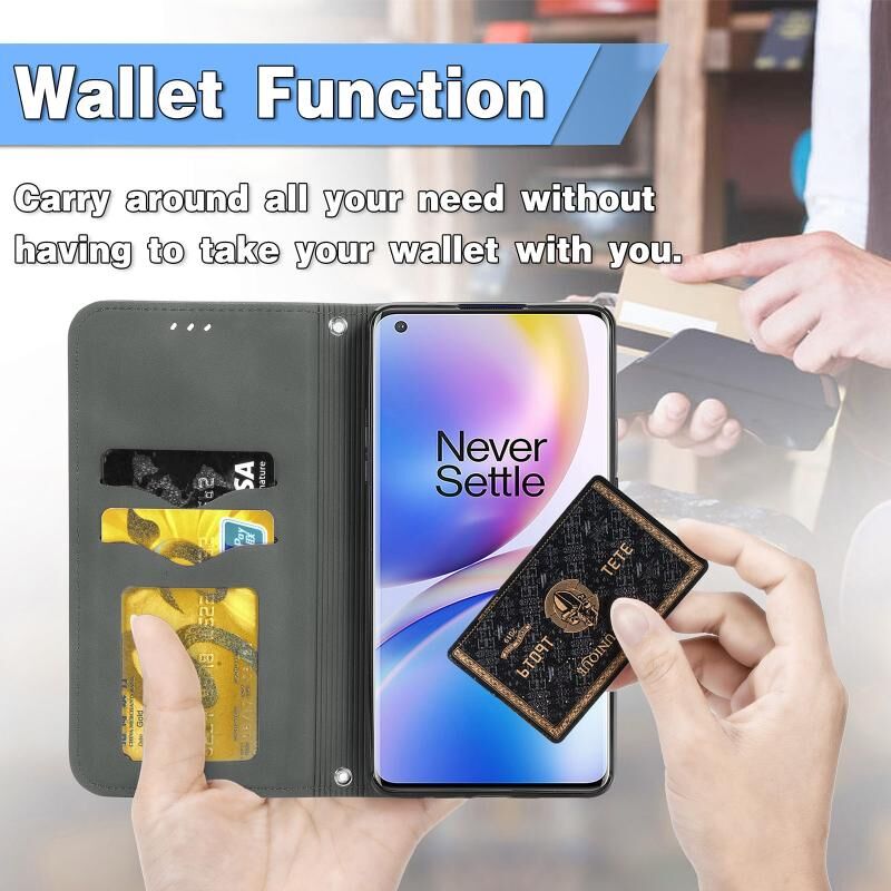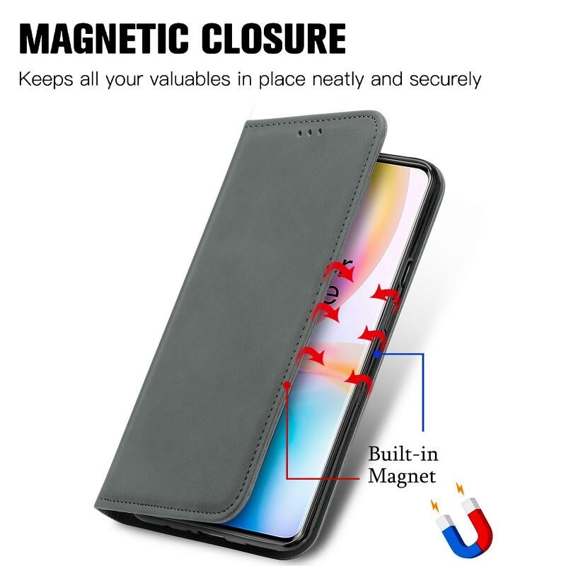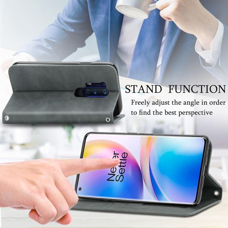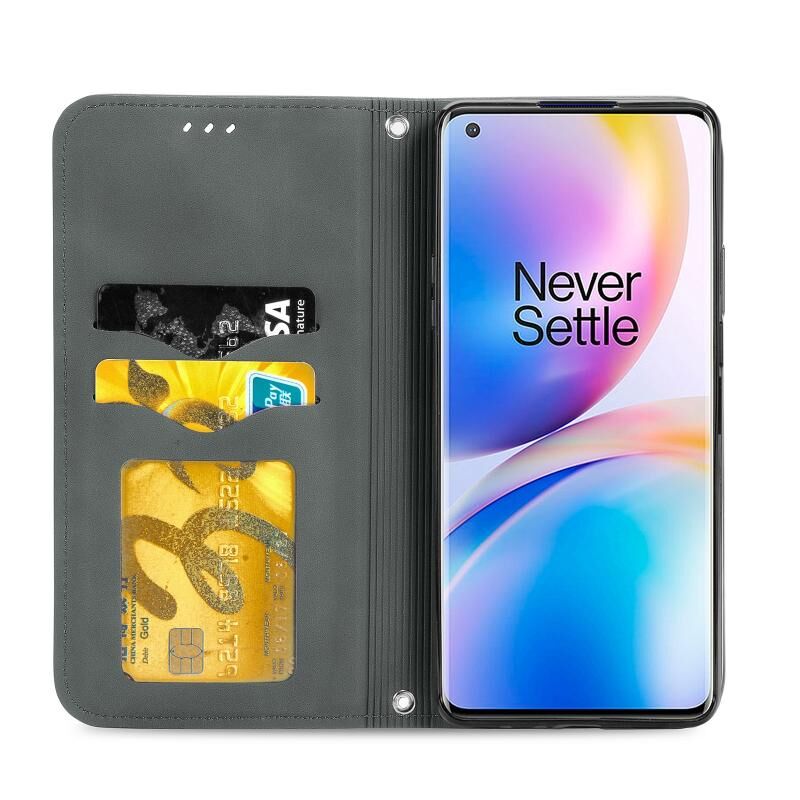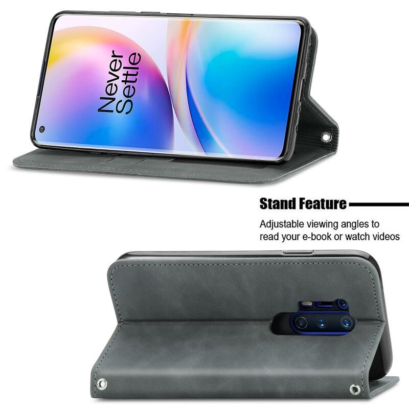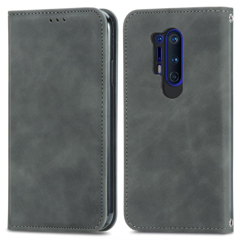 Ρετρό δέρμα αίσθηση Business μαγνητική οριζόντια Flip δερμάτινη θήκη με κάτοχο & υποδοχές καρτών & πορτοφόλι & πλαίσιο φωτογραφιών για OnePlus 8 Pro (γκρι)