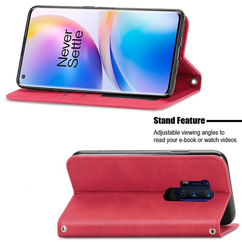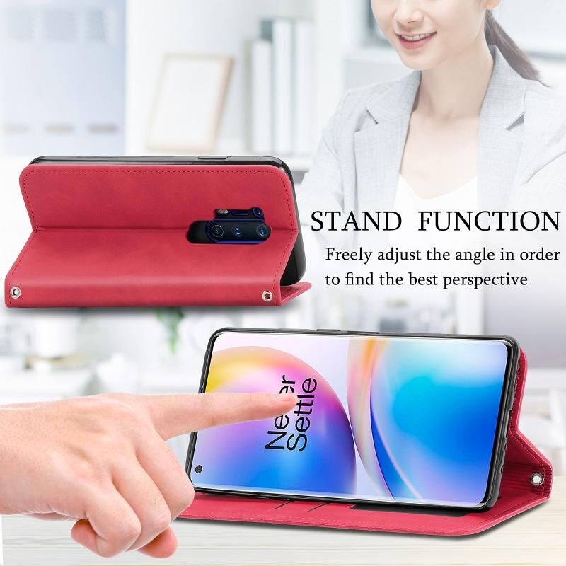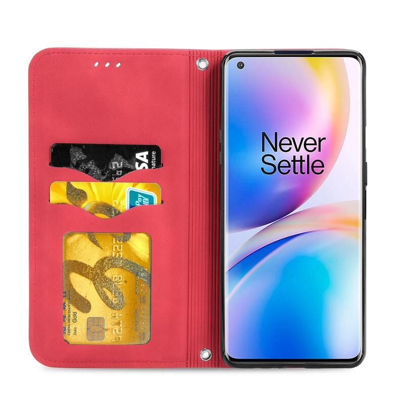 Ρετρό δέρμα αισθάνομαι Business μαγνητική οριζόντια Flip δερμάτινη θήκη με κάτοχο & υποδοχές καρτών & πορτοφόλι & πλαίσιο φωτογραφιών για OnePlus 8 Pro (κόκκινο)