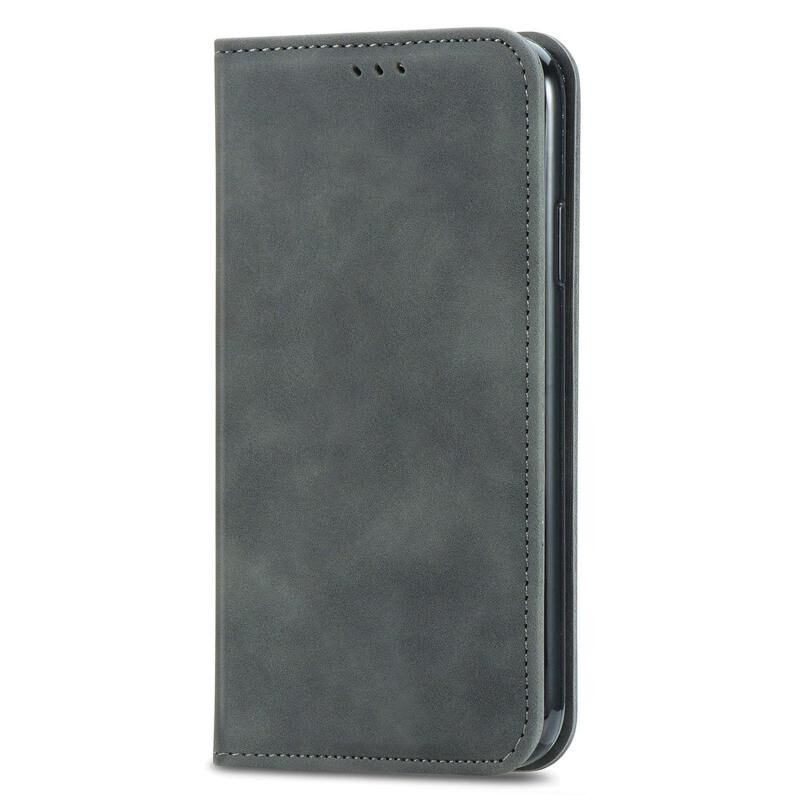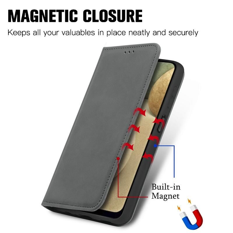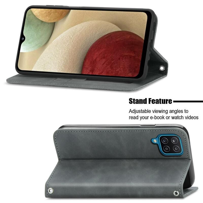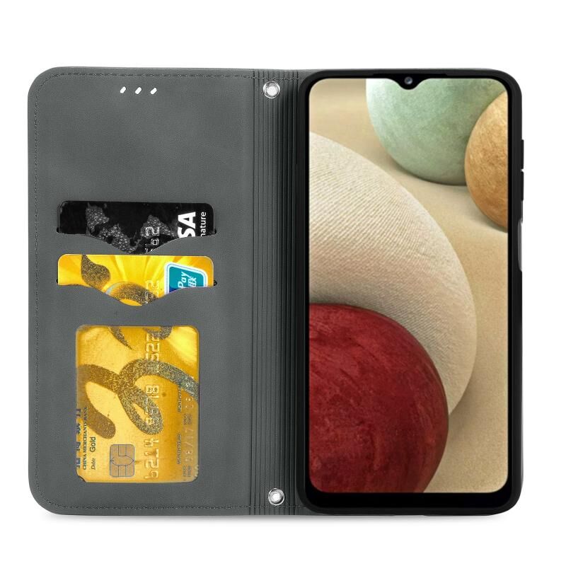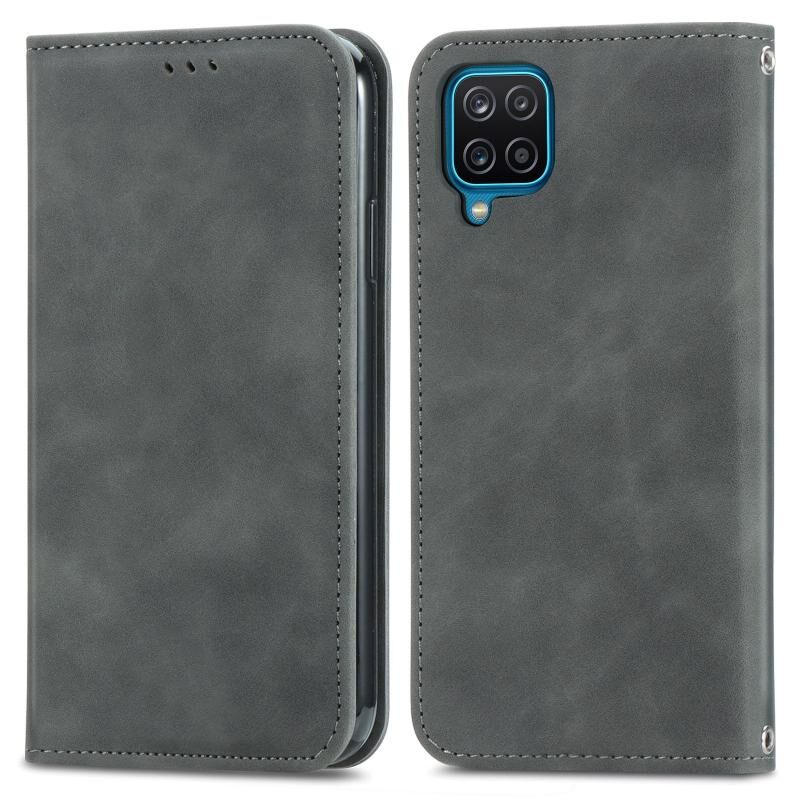 Retro Skin Feel Business μαγνητική οριζόντια Flip δερμάτινη θήκη με θήκη για κάρτες & υποδοχές & πορτοφόλι & πλαίσιο φωτογραφιών για Samsung Galaxy A12 (γκρι)