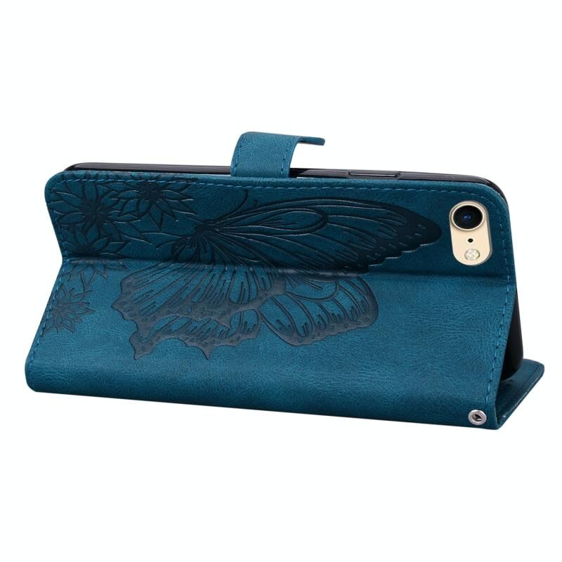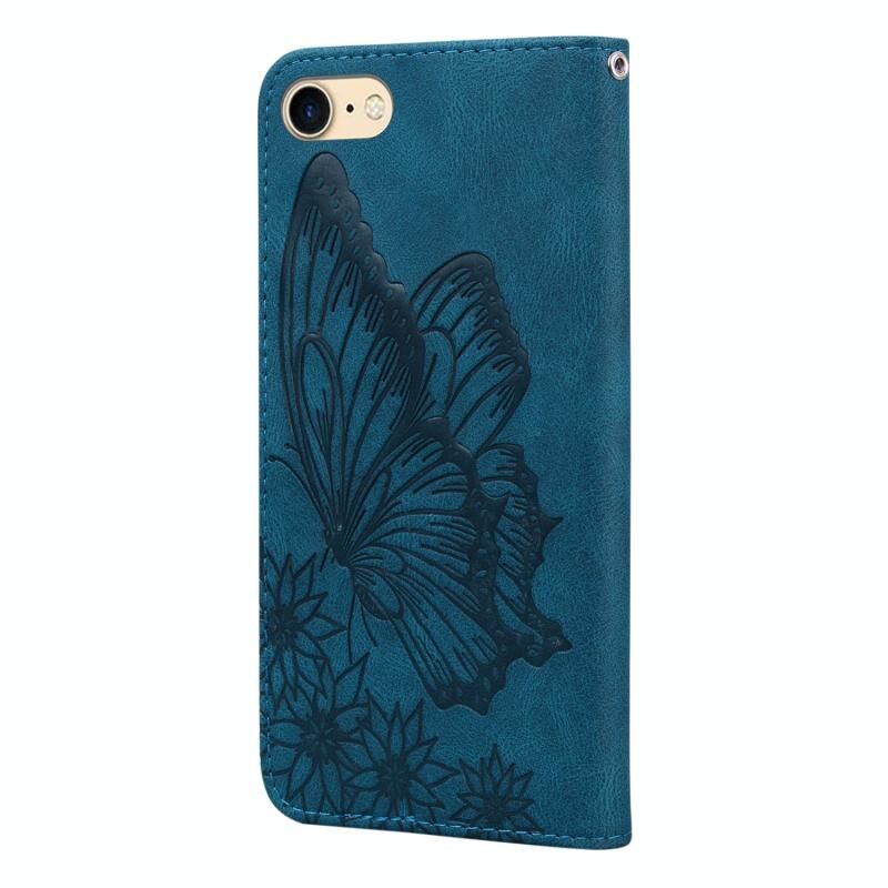 Θήκη δέρματος οριζόντιας αναδίπλωσης με ανάγλυφα σχέδια πεταλούδων, υφή retro, με βάση και θήκες για κάρτες & πορτοφόλι για iPhone 6 / 6s (Μπλε)