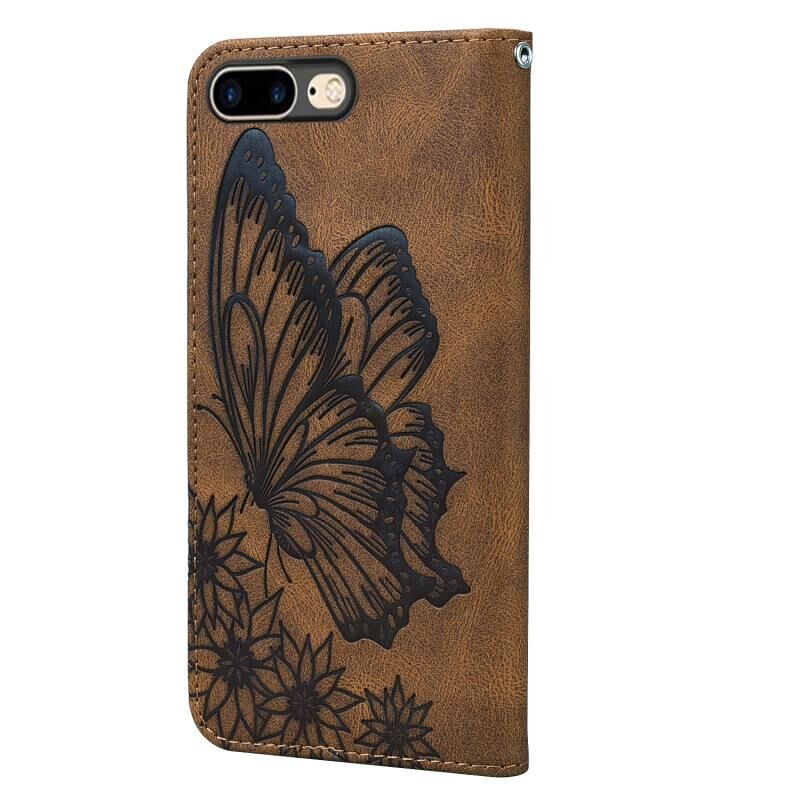 Θήκη δέρματος οριζόντιας αναδίπλωσης με ανάγλυφο σχέδιο πεταλούδων, υφή retro, με βάση και θήκες για κάρτες & πορτοφόλι για iPhone 6 Plus / 6s Plus (Καφέ)