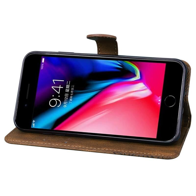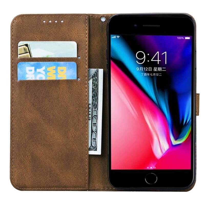 Θήκη δέρματος οριζόντιας αναδίπλωσης με ανάγλυφα σχέδια πεταλούδων, υφή retro, με βάση και θήκες για κάρτες & πορτοφόλι για iPhone 8 Plus / 7Plus (Μπλε)