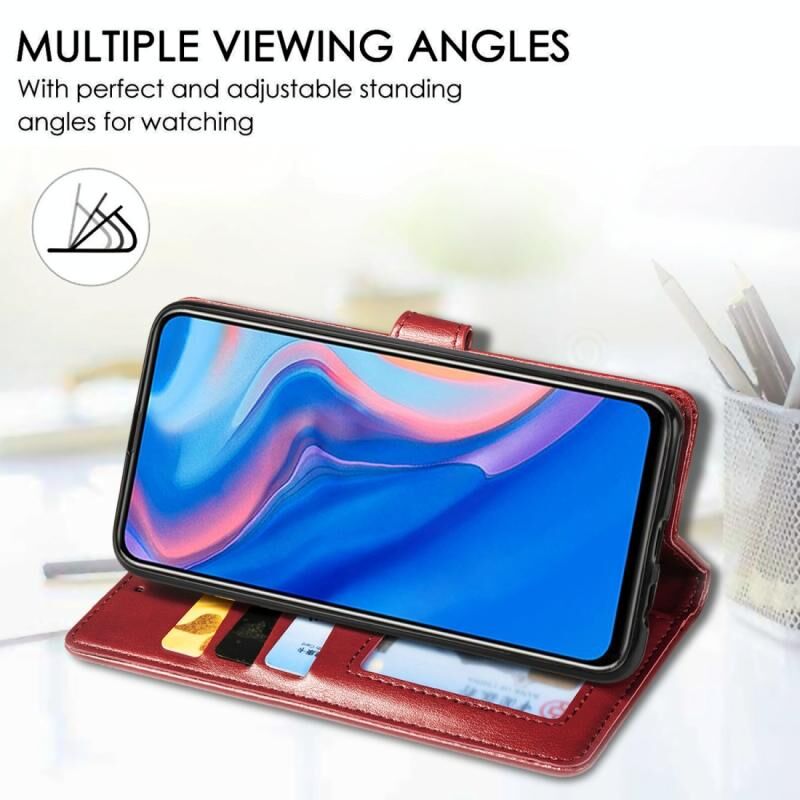 Ρετρό στερεό χρώμα δερμάτινη πόρπη προστασίας κινητού τηλεφώνου δερμάτινη θήκη με κορδόνι & πλαίσιο φωτογραφιών & υποδοχή κάρτας & πορτοφόλι & λειτουργία βραχίονα για Huawei Y9 Prime 2019 (καφέ)