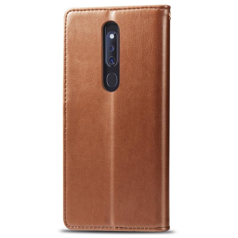 Θήκη κινητού τηλεφώνου από δέρμα με συμπαγή χρώματα, με αγκράφα, λουρί, κορνίζα φωτογραφιών, θήκη καρτών, πορτοφόλι και λειτουργία βάσης στήριξης για OPPO F11 Pro / A9X (Καφέ)