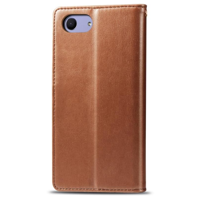 Ρετρό αμιγές χρώμα δερμάτινη αγκράφα προστασίας κινητού τηλεφώνου δερμάτινη θήκη με κορδόνι & πλαίσιο φωτογραφιών & υποδοχή κάρτας & πορτοφόλι & λειτουργία βραχίονα για Sony Xperia XZ4 Compact / Xperia XZ4 Mini (καφέ)