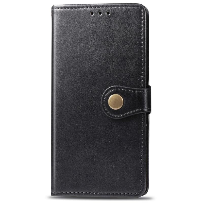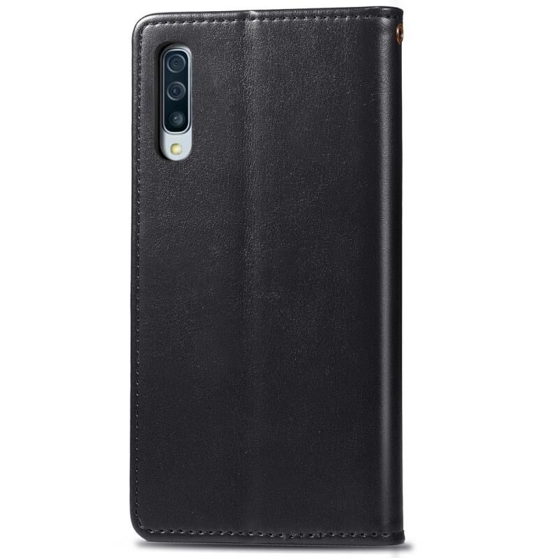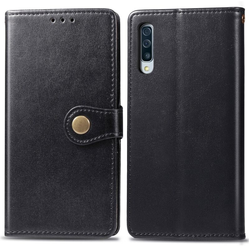 Ρετρό Αμιγές χρώμα δέρμα αγκράφα κινητό τηλέφωνο προστασία δερμάτινη θήκη με πλαίσιο φωτογραφιών & υποδοχή κάρτας & πορτοφόλι & λειτουργία βραχίονα για Galaxy A50 (Μαύρο)