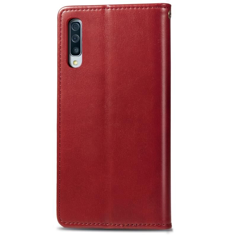 Ρετρό Αμιγές χρώμα δέρμα αγκράφα κινητό τηλέφωνο προστασία δερμάτινη θήκη με πλαίσιο φωτογραφιών & υποδοχή κάρτας & πορτοφόλι & λειτουργία βραχίονα για Galaxy A50 (κόκκινο)
