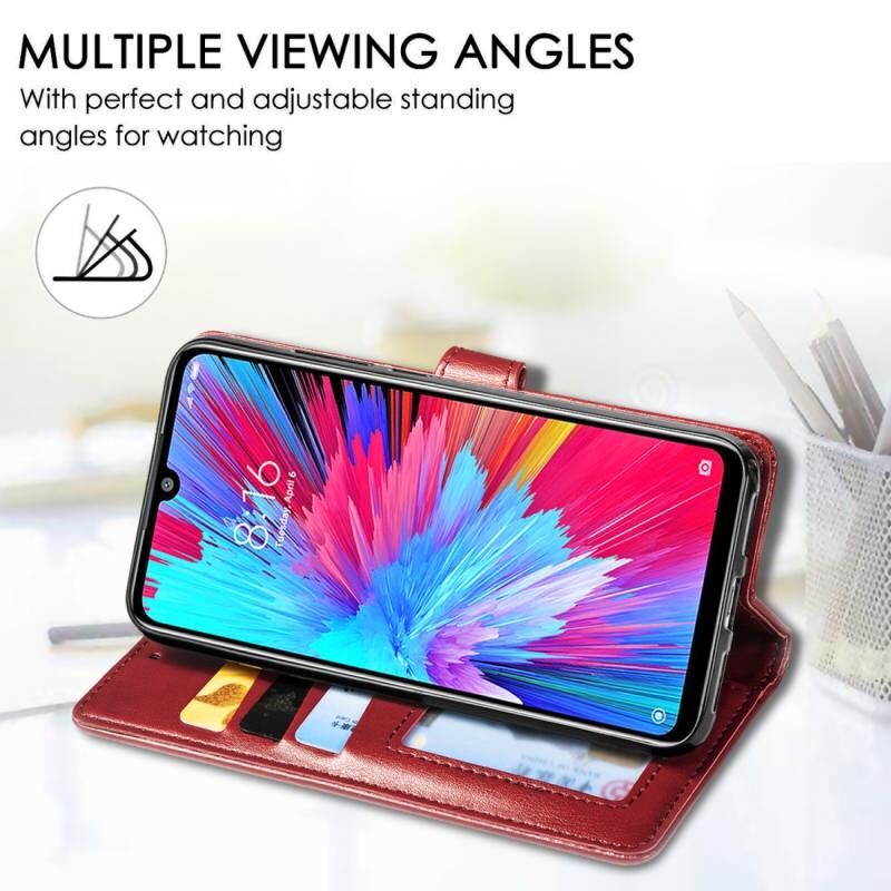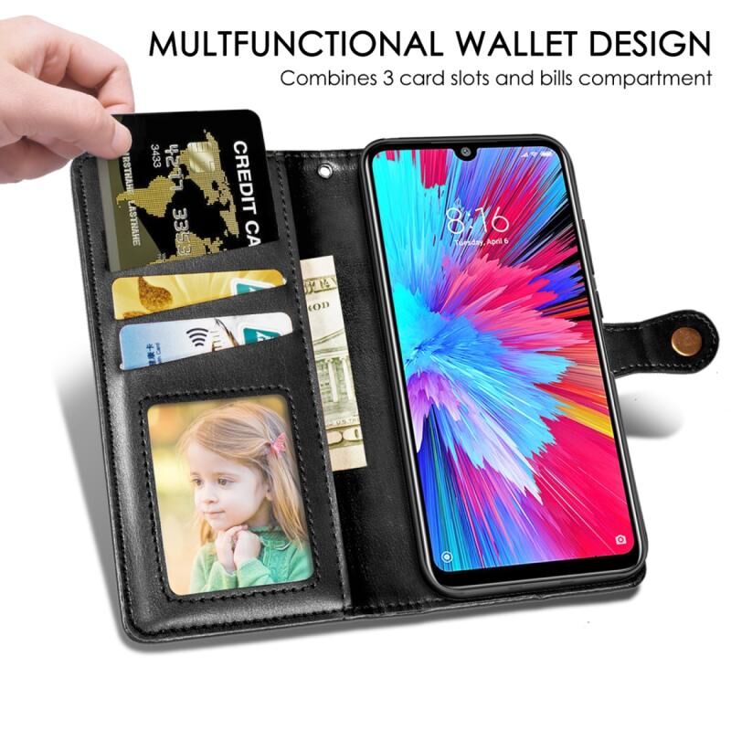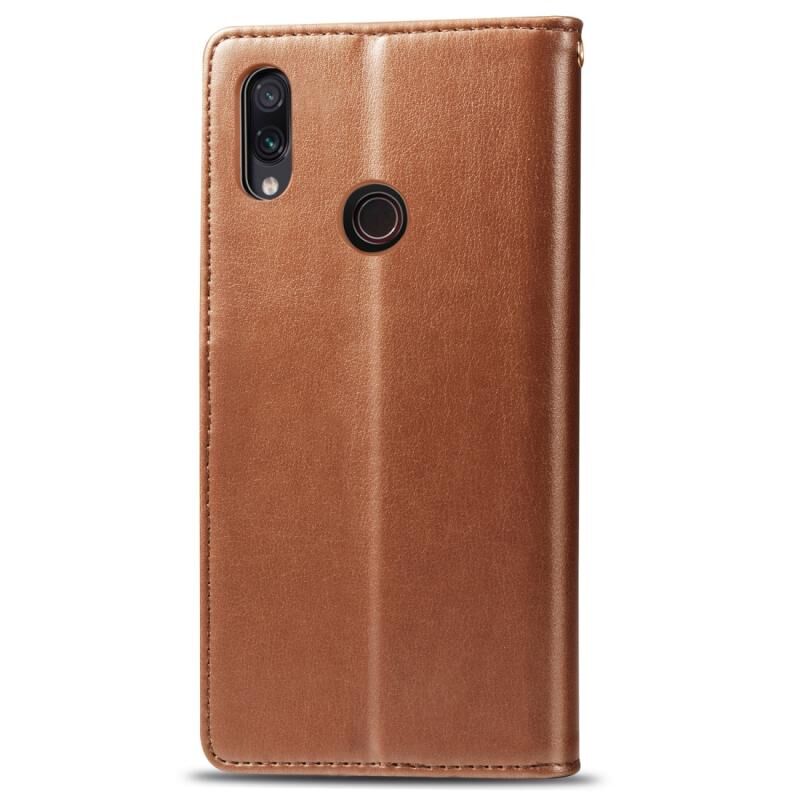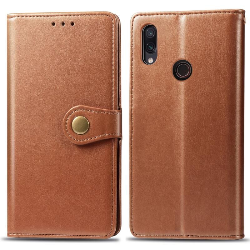 Ρετρό στερεό χρώμα δερμάτινη αγκράφα κινητό τηλέφωνο προστασία δερμάτινη θήκη με πλαίσιο φωτογραφιών & υποδοχή κάρτας & πορτοφόλι & λειτουργία βραχίονα για Xiaomi Redmi 7 (Καφέ)