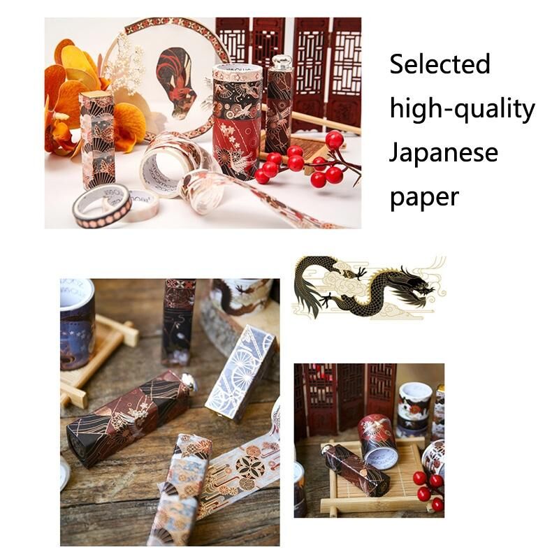 1. Το μοτίβο είναι καθαρό και μπορεί να χρησιμοποιηθεί για διακόσμηση. 2. Επιλεγμένο ιαπωνικό χαρτί υψηλής ποιότητας. 3. Προδιαγραφές: σετ 5 ρολών. 4. Υλικό: Ιαπωνικό χαρτί + μπρονζέ. 5. Πεδίο εφαρμογής: ημερολόγιο, κραγιόν και άλλα διακοσμητικά. 6. Πλάτος: 8/10/30/50mm. 7. Μήκος: 2 μέτρα. 8. Πάχος: 4cm. 9. Βάρος: περίπου 53g (ένα σετ).