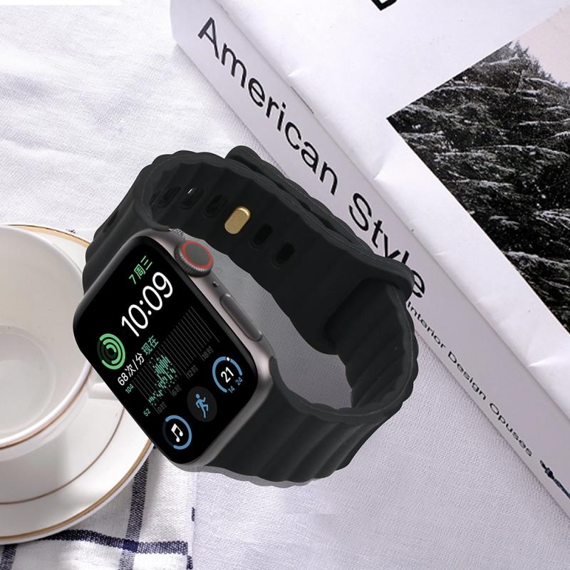 Reverse Buckle Silicone Watch Band for Apple Watch Series 9&8&7 41mm / SE 3&SE 2&6&SE&5&4 40mm / 3&2&1 38mm(Black)