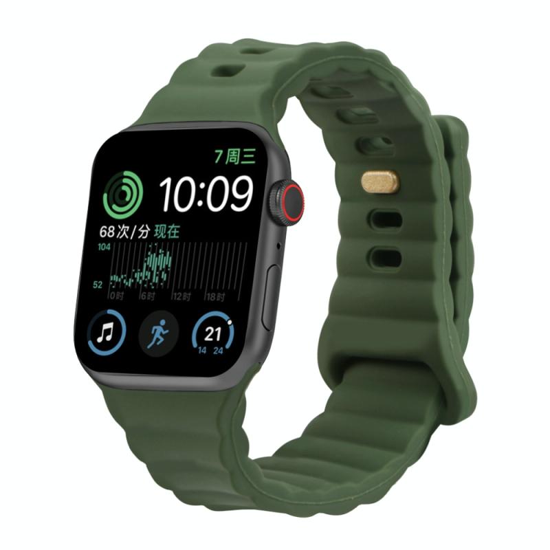 Reverse Buckle Silicone Watch Band for Apple Watch Series 9&8&7 41mm / SE 3&SE 2&6&SE&5&4 40mm / 3&2&1 38mm(Dark Green)