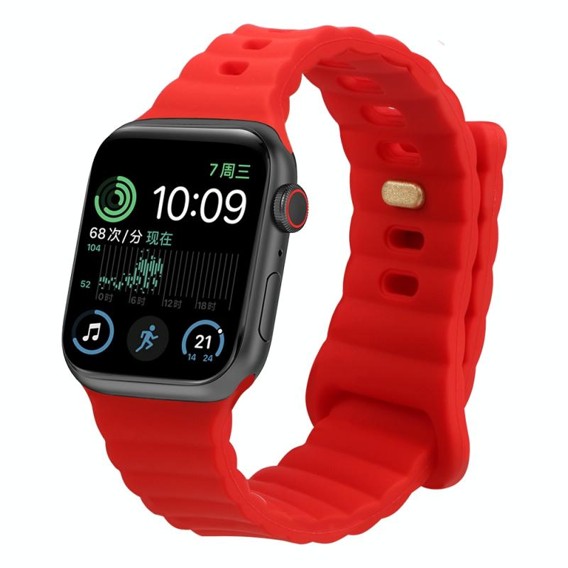 Λουράκι Σιλικόνης για Apple Watch Ultra 49mm & Watch Ultra 2 49mm / Series 9 & 8 & 7 45mm / SE 3 & SE 2 & 6 & SE & 5 & 4 44mm / 3 & 2 & 1 42mm με Αγκράφα Αντίστροφης Στερέωσης (Κόκκινο)