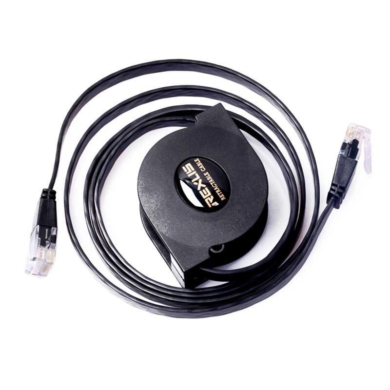 REXLIS 2m CAT6 αναδιπλούμενο επίπεδο καλώδιο RJ45 Ethernet LAN δικτύου (μαύρο) (REXLIS)