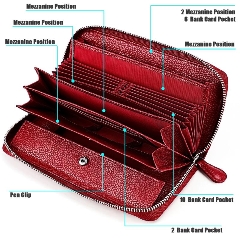 4. Η εσωτερική δομή της μικρής τσάντας: θήκη για χαρτονομίσματα, θήκη για κέρματα, θήκη για κάρτες, θήκη για επιταγές