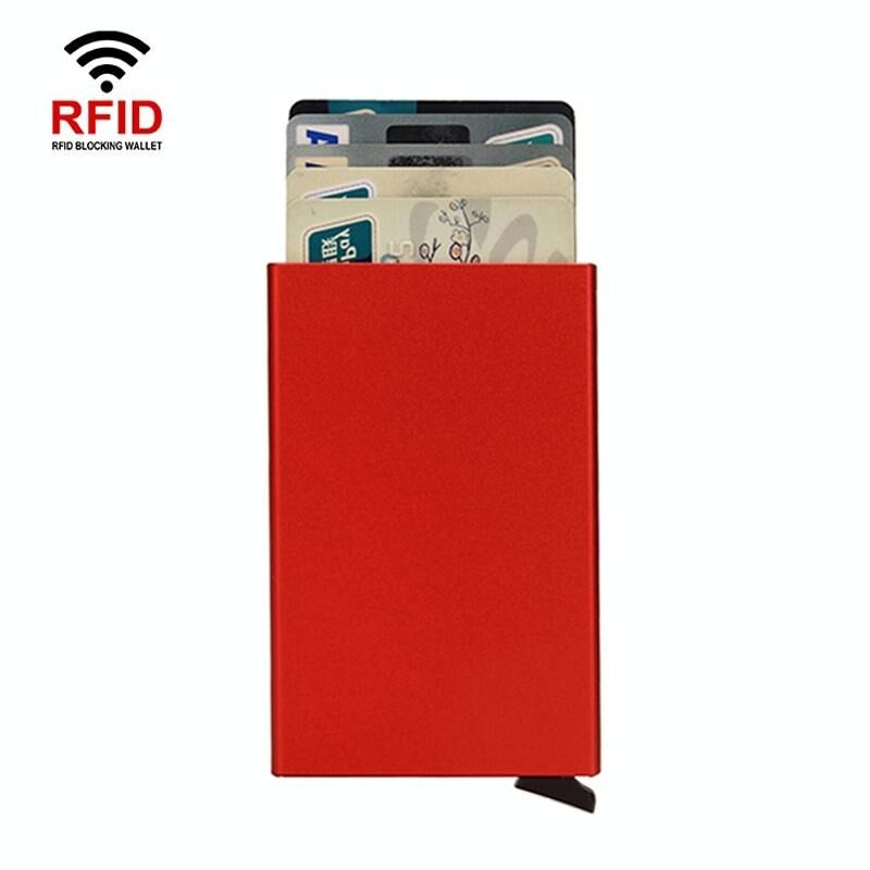 RFID Σύντομη μεταλλική θήκη κάρτας πιστωτικής κάρτας κάτοχος πορτοφόλι (κόκκινο)