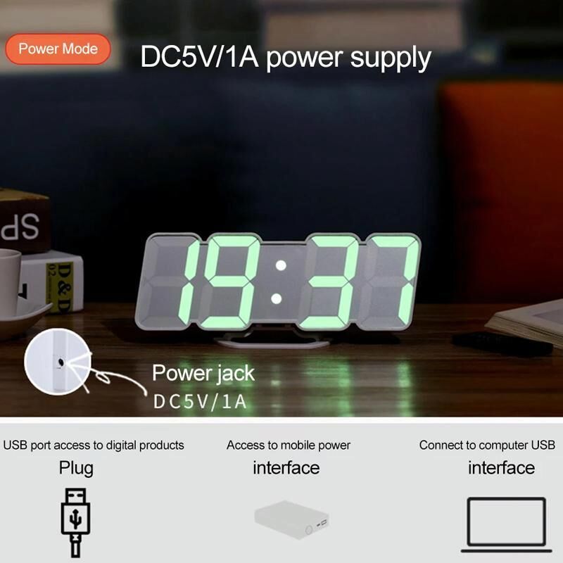 5. Power supply: DC5V/1A, when the external power supply is disconnected, the built-in memory battery (CR2032) ensures the normal running of the clock, but the LED screen has no display and enters the power-saving mode.