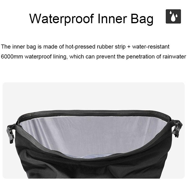 6. The inner bag adopts hot-pressed rubber strip + water-resistant 6000mm waterproof lining, which can prevent the penetration of rainwater