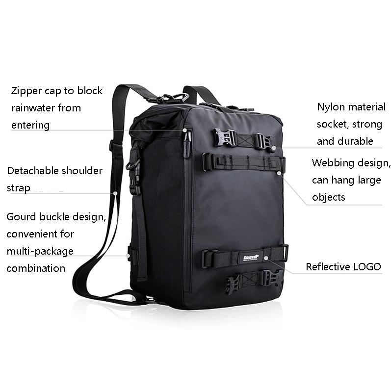 Rhinowalk Multi-Function Motorcycle Rear Seat Bag Combination Rear Shelf Pannier, Colour: Black 30L (Rhinowalk)