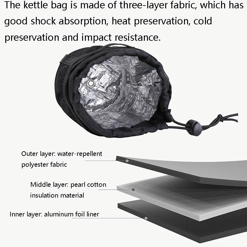 2. Η τσάντα για το μπουκάλι νερού είναι κατασκευασμένη από τριπλής στρώσης ύφασμα αδιάβροχου πολυεστέρα, θερμομόνωση από βαμβάκι μαργαριταριού και επένδυση από αλουμινόχαρτο, η οποία έχει καλή απορρόφηση κραδασμών, διατήρηση θερμότητας, διατήρηση ψύχους και αντοχή σε κρούσεις.