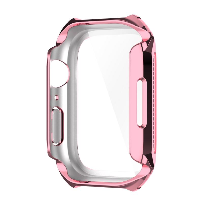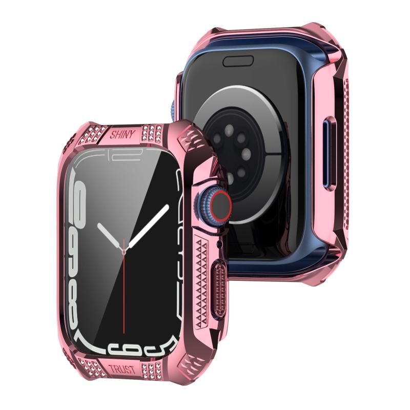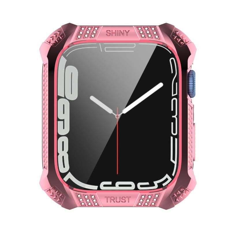 Rhombus Belt Drill + Tempered Film Integrated Case For Apple Watch Series 9 / 8 / 7 45mm(Pink)