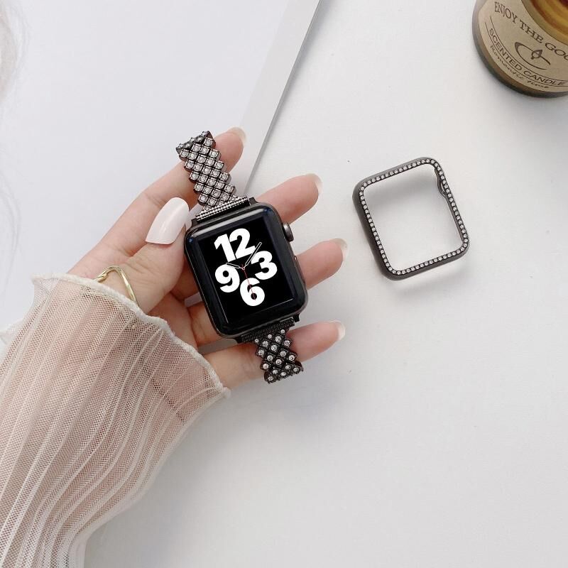 Rhombus Full Diamond Metal Wrist Strap Watch Band + Case For Apple Watch Series 3 & 2 & 1 38mm(Black)