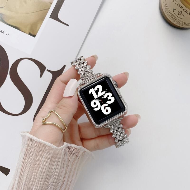Rhombus Full Diamond Metal Wrist Strap Watch Band + Case For Apple Watch Series 3 & 2 & 1 42mm(Silver)