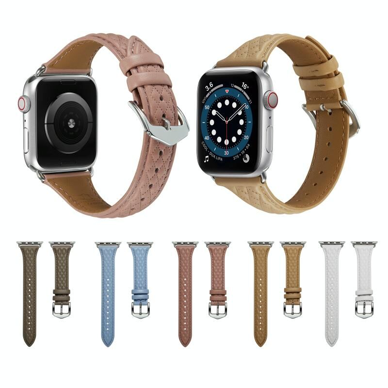 Λουρί ρολογιού από γνήσιο δέρμα Rhombus για Apple Watch Series 8&7 41mm / SE 2&6&SE&5&4 40mm / 3&2&1 38mm (Γκρι)