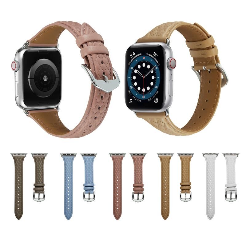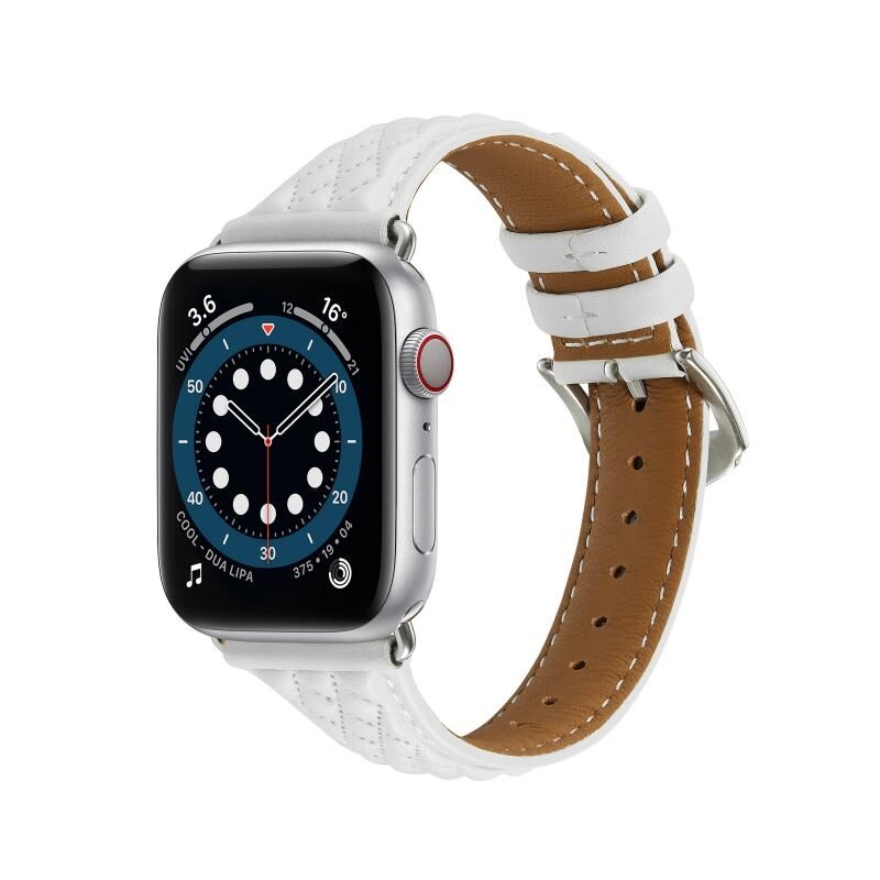 Λουρί ρολογιού από γνήσιο δέρμα Rhombus για Apple Watch Series 8&7 41mm / SE 2&6&SE&5&4 40mm / 3&2&1 38mm (Λευκό)