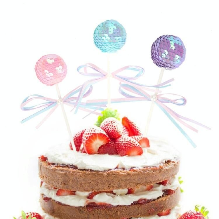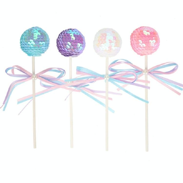 Ribbon Bow Sequin Ball Cake Party Dessert Inserted Card(White)