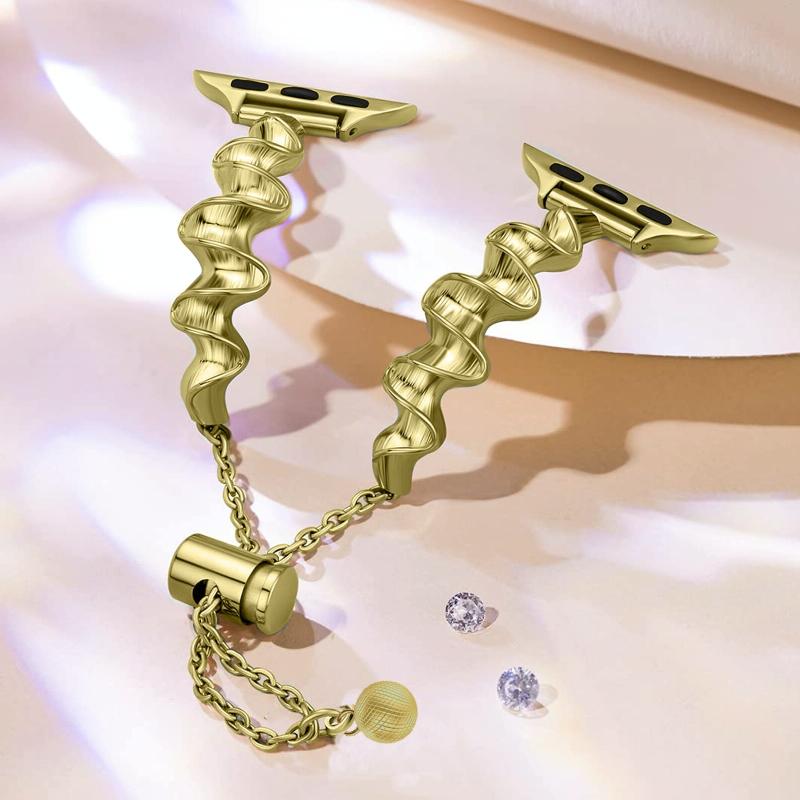 Λουρί για Apple Watch Series 10 42mm από μέταλλο, τύπου Ribbon (Χρυσός)