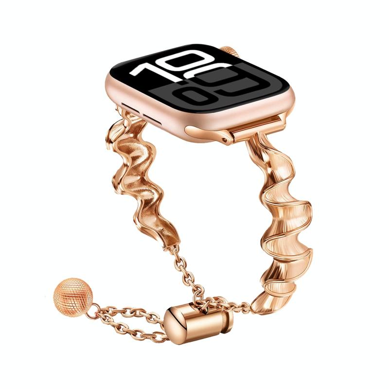 Λουρί για Apple Watch Series 10 42mm από μέταλλο, τύπου Ribbon (Ροζ χρυσός)