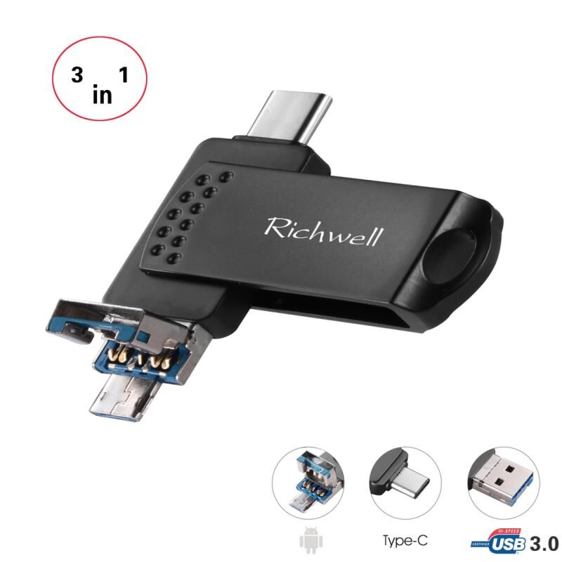 Richwell 3 σε 1 32GB Type-C + Micro USB + USB 3.0 Μεταλλικός Δίσκος Flash με Λειτουργία OTG (Μαύρο) (Richwell)