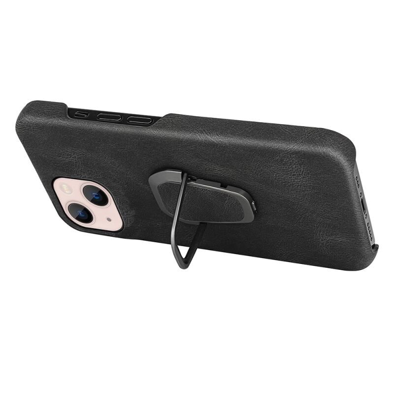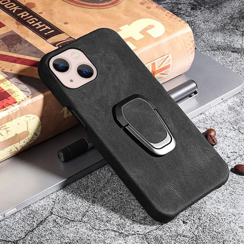 Θήκη τηλεφώνου από PU με δακτύλιο στήριξης για iPhone 14 Max (Μαύρο)