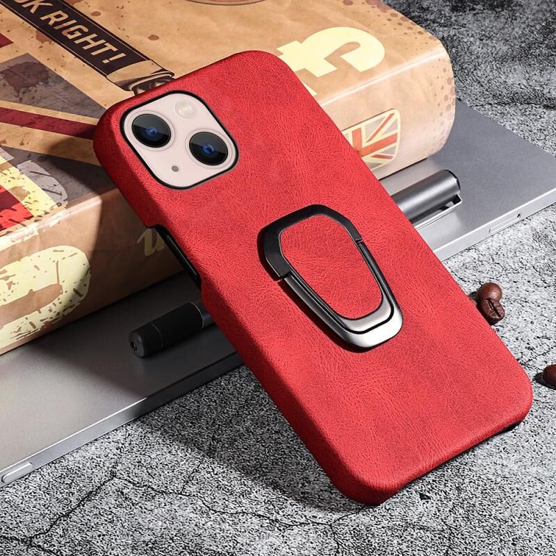Θήκη τηλεφώνου από PU με δακτύλιο στήριξης για iPhone 14 Max (Κόκκινο)
