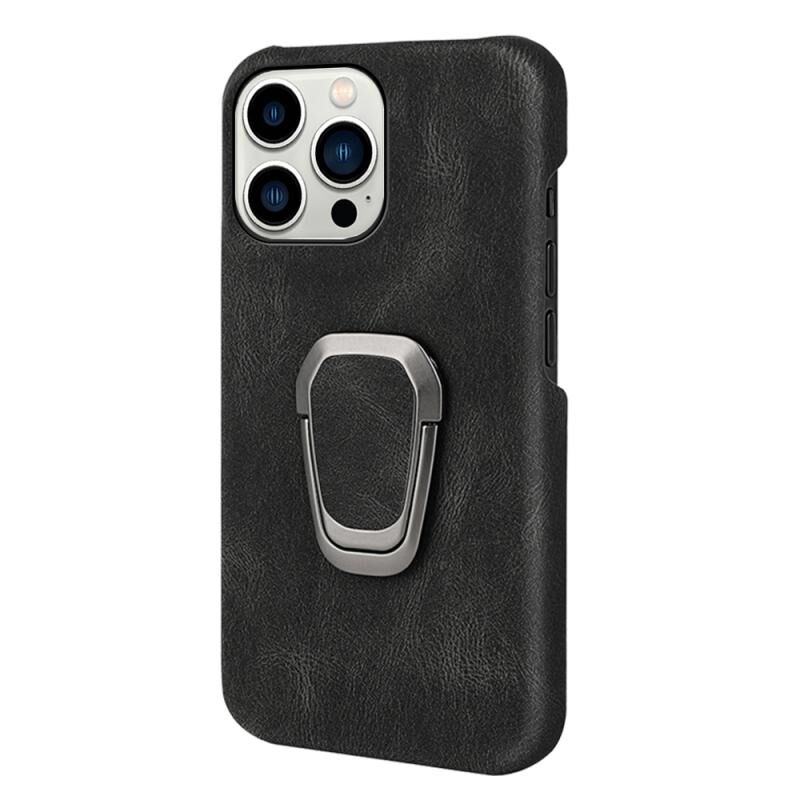 Θήκη τηλεφώνου από PU με δακτύλιο για iPhone 14 Pro (Μαύρο)