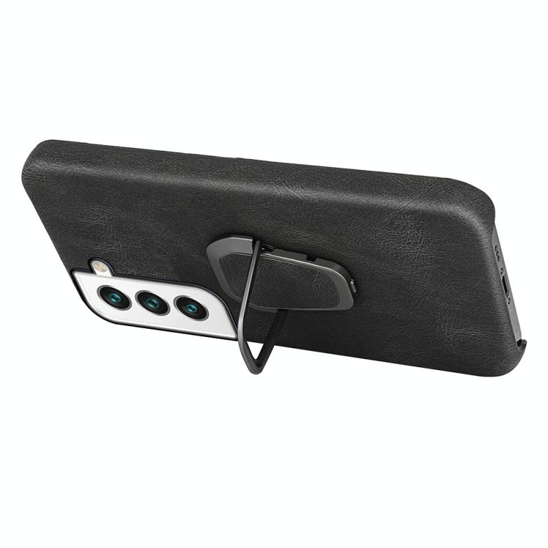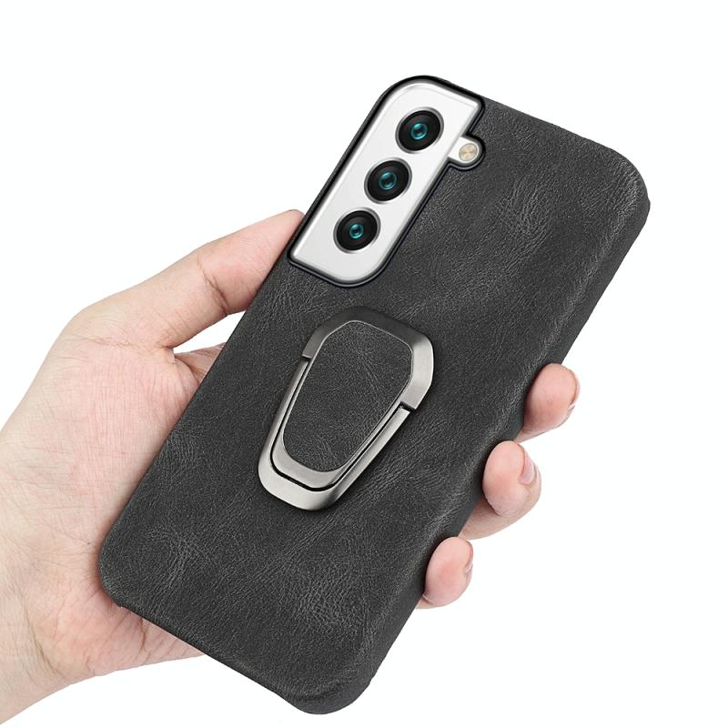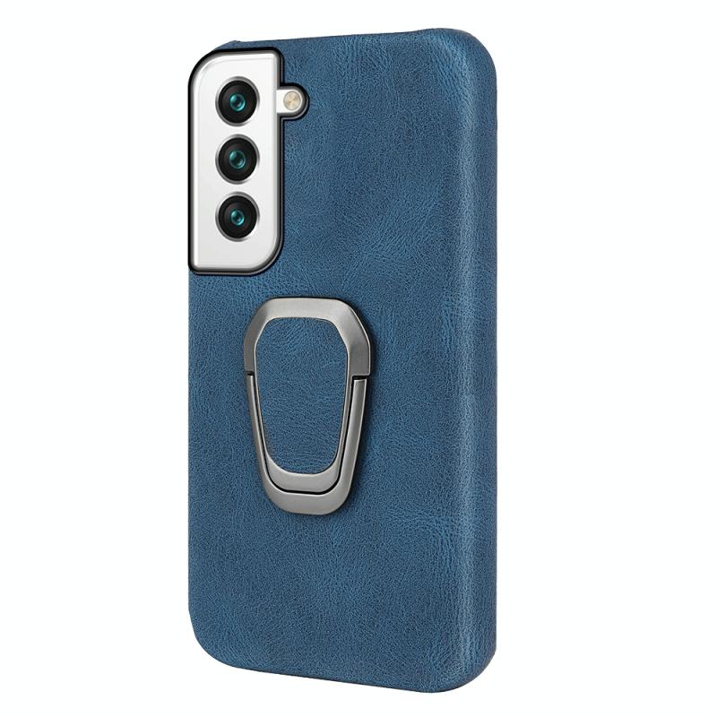 Ring Holder PU Phone Case For Samsung Galaxy S22 5G(Blue)