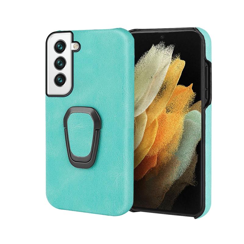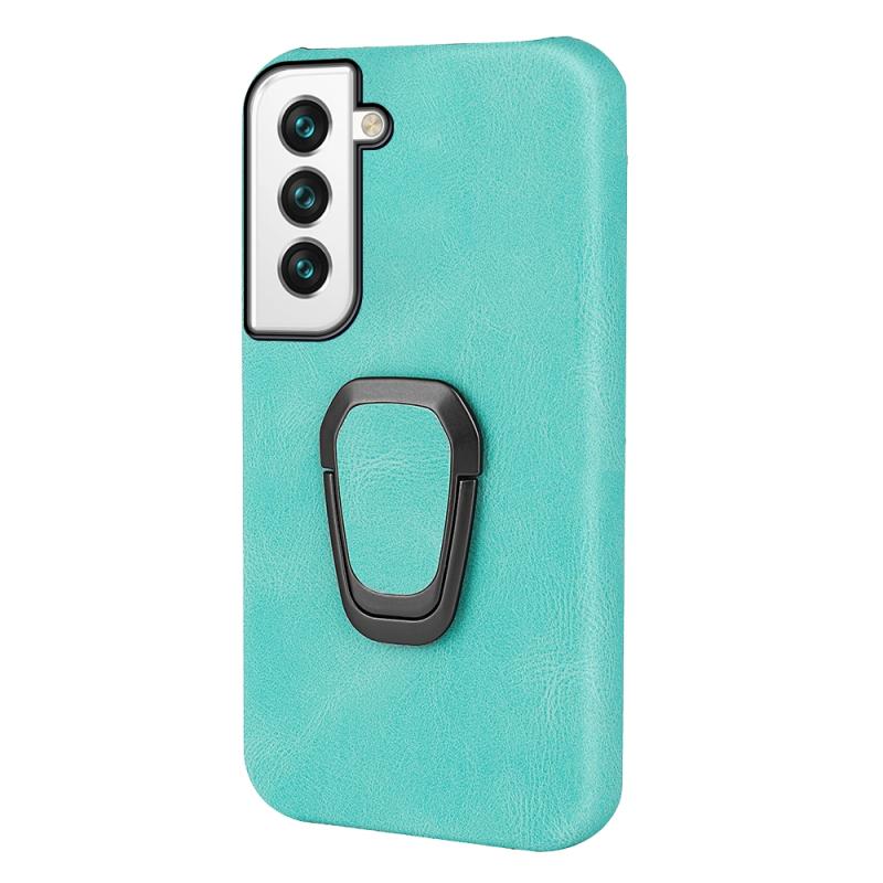 Ring Holder PU Phone Case For Samsung Galaxy S22 5G(Mint Green)