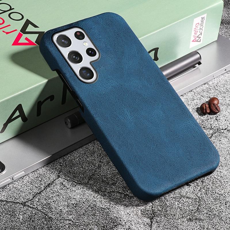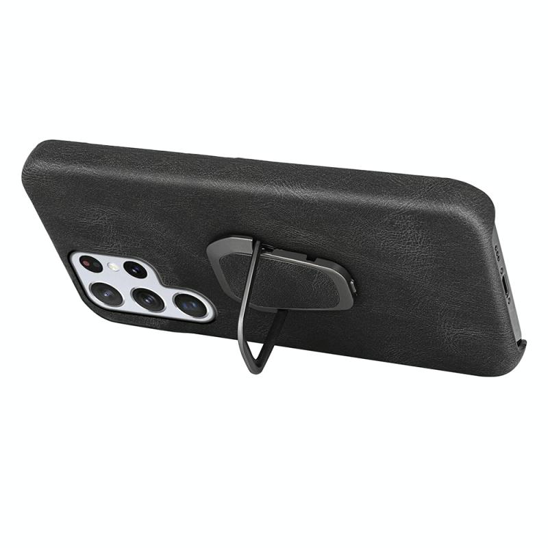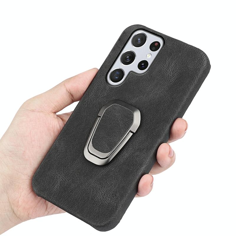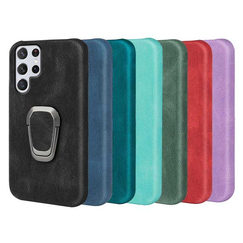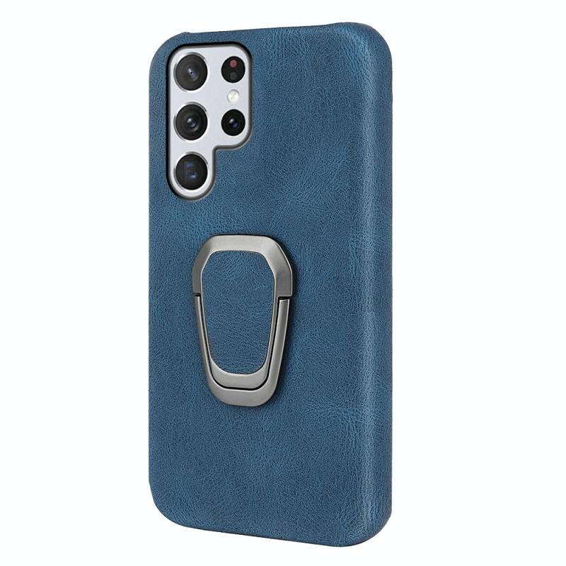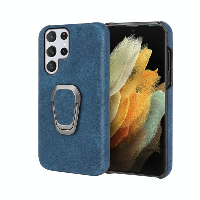 Ring Holder PU Phone Case For Samsung Galaxy S22 Ultra 5G(Blue)