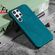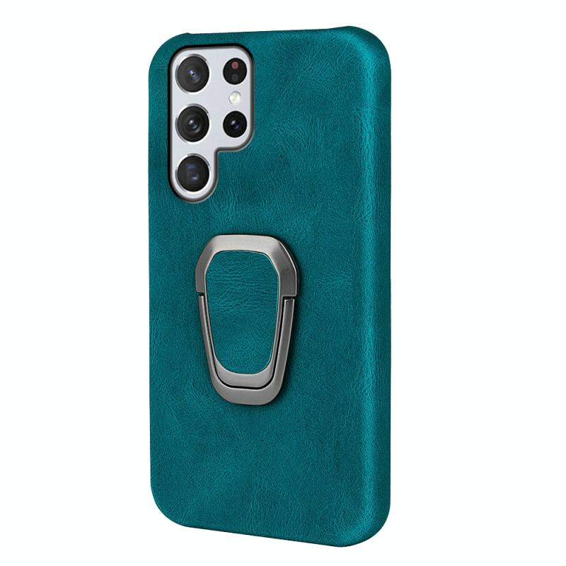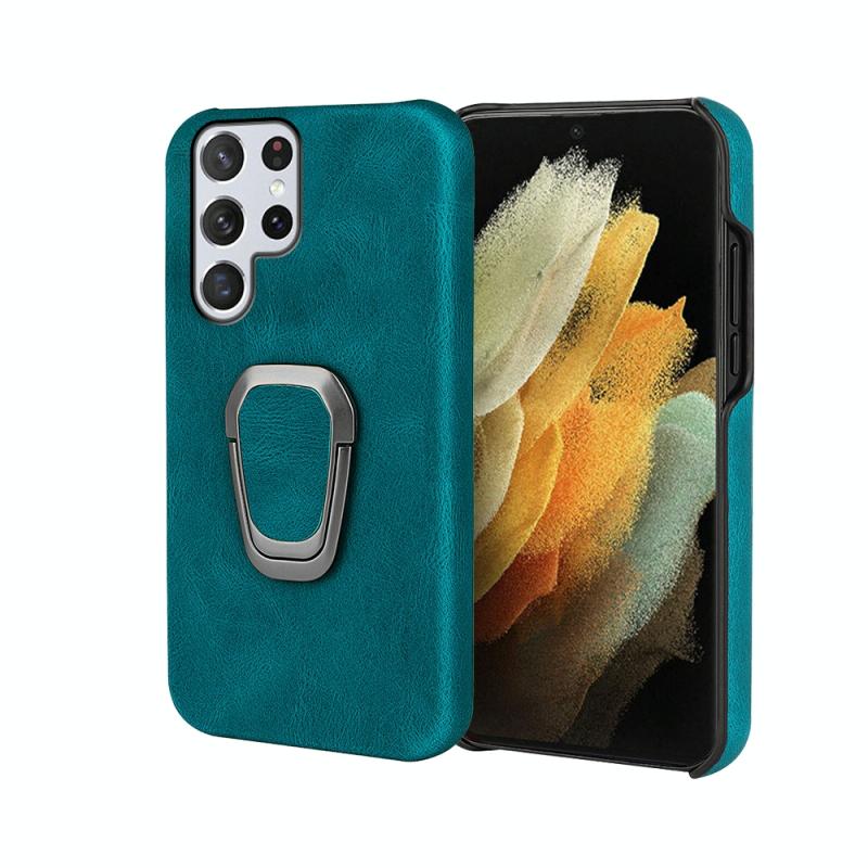Ring Holder PU Phone Case For Samsung Galaxy S22 Ultra 5G(Cyan)
