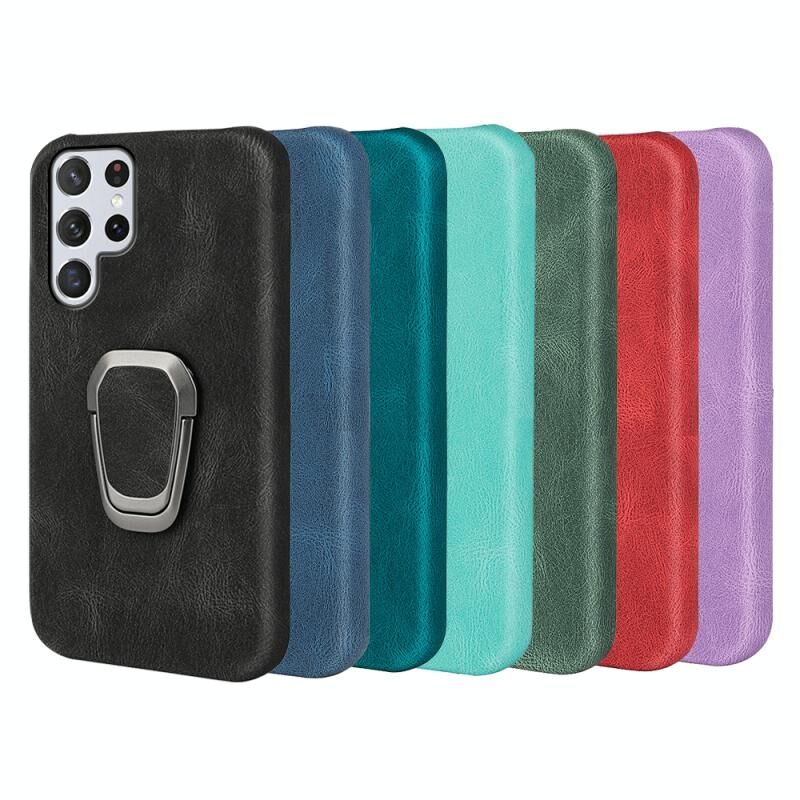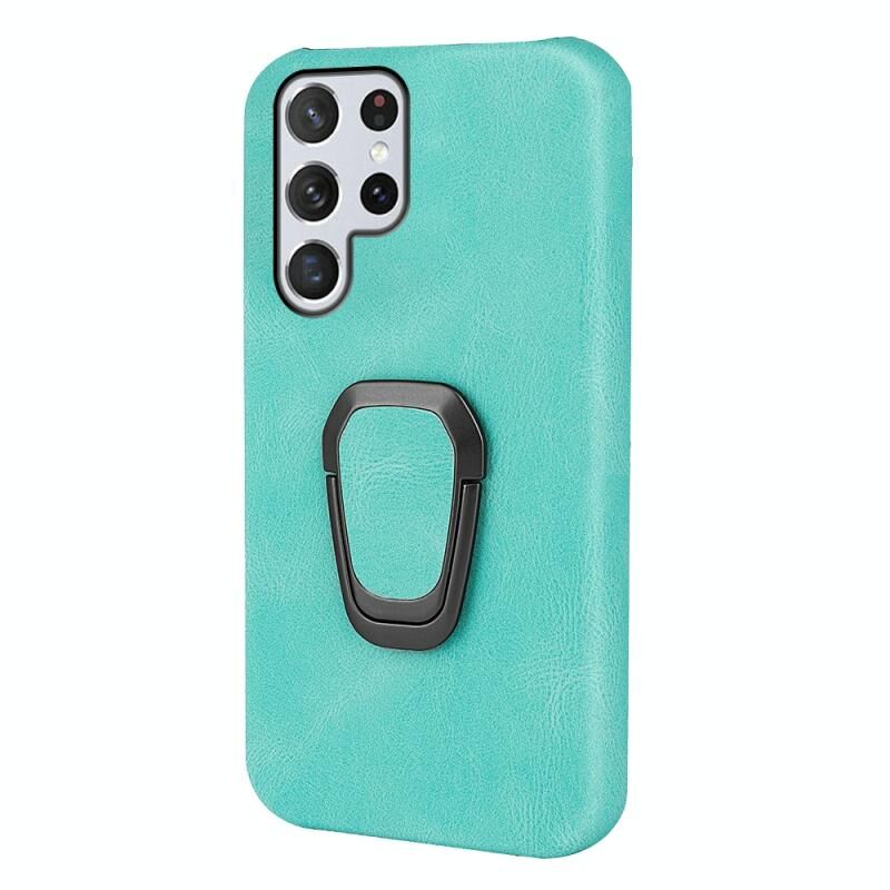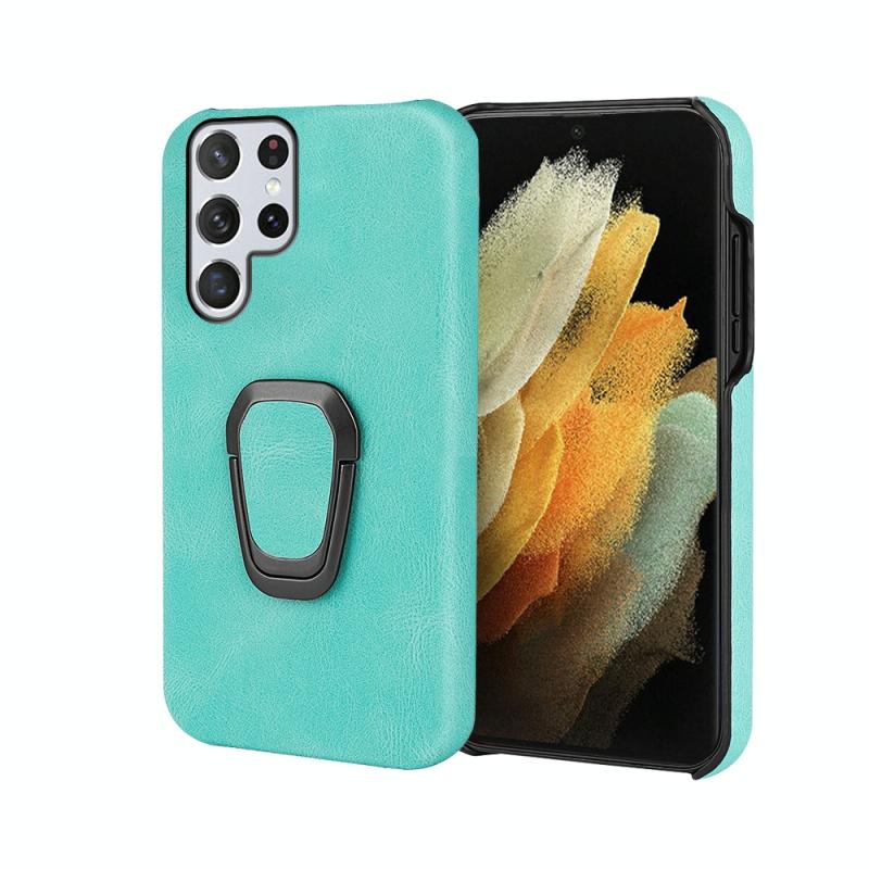 Ring Holder PU Phone Case For Samsung Galaxy S22 Ultra 5G(Mint Green)