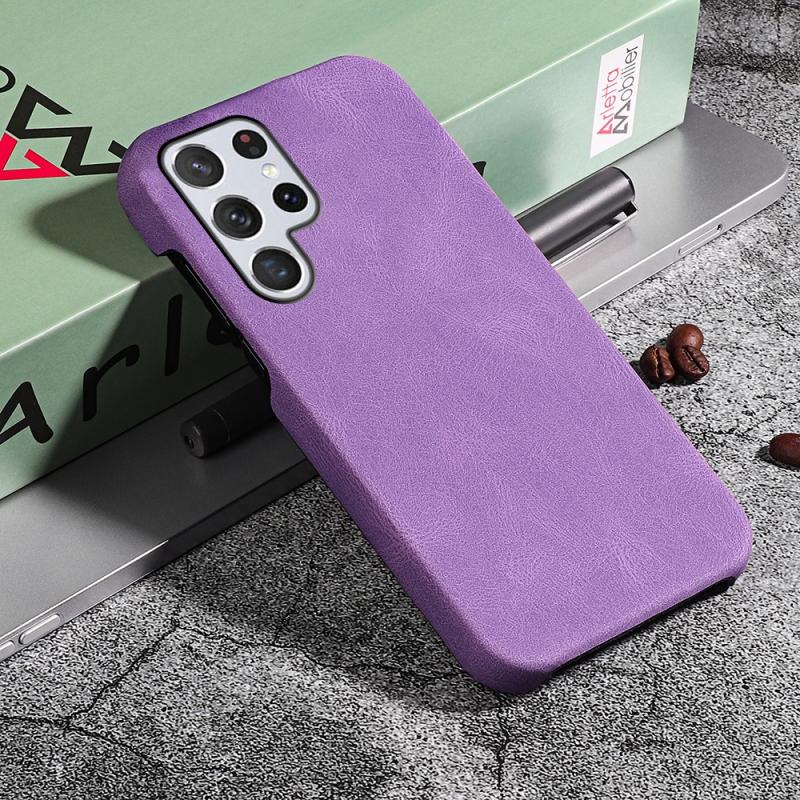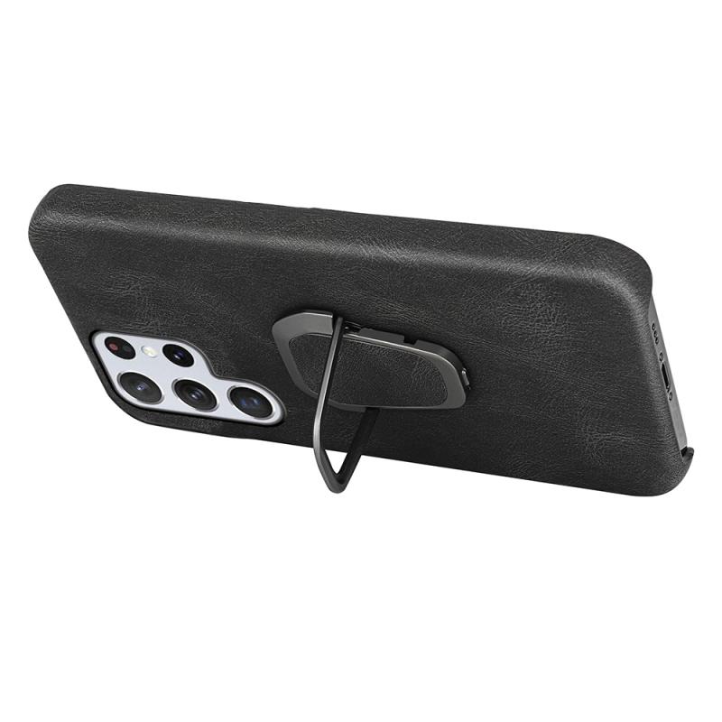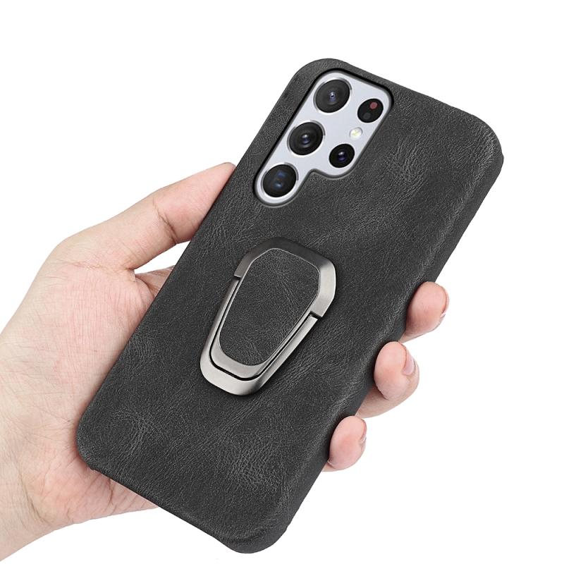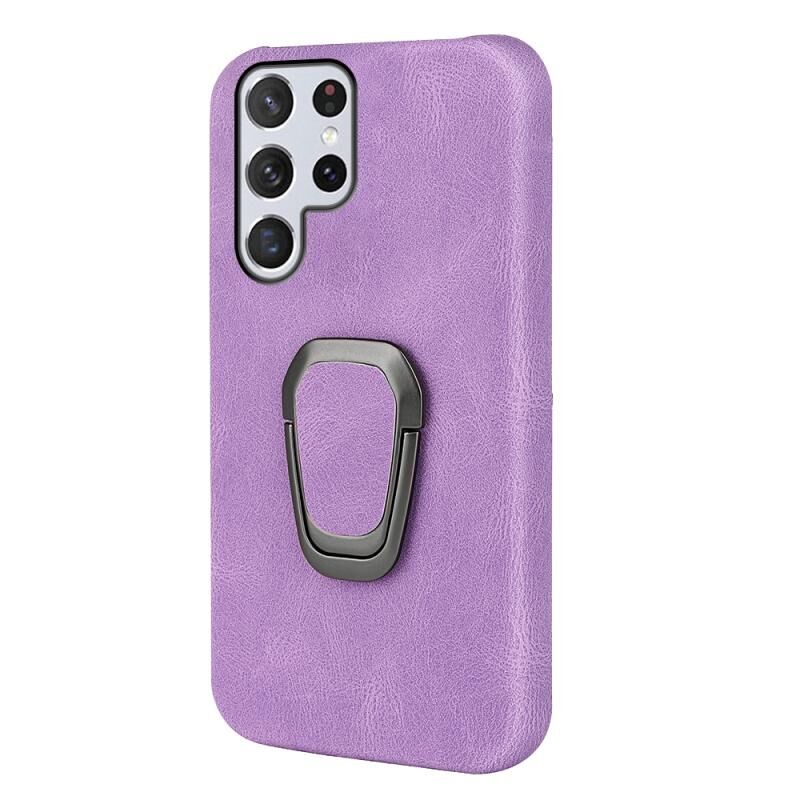 Ring Holder PU Phone Case For Samsung Galaxy S22 Ultra 5G(Purple)