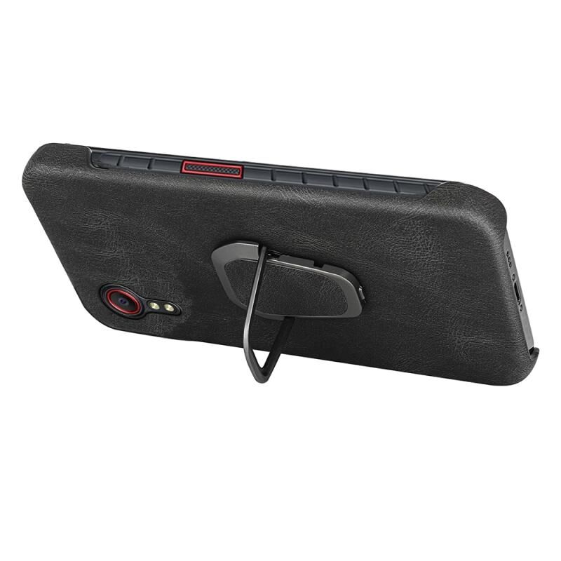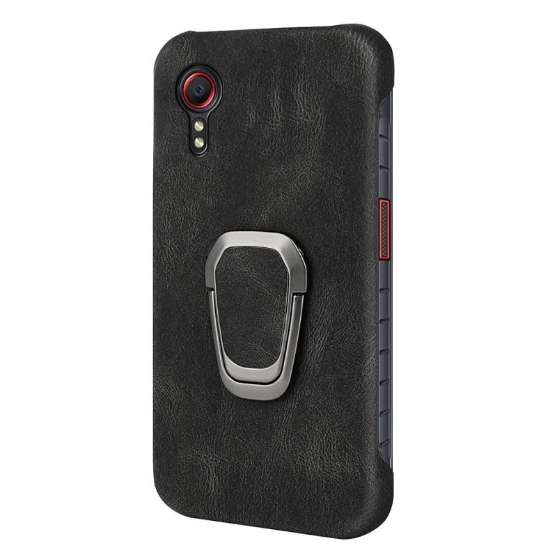 Ring Holder PU Phone Case For Samsung Galaxy Xcover 5 / Xcover 5S(Black)