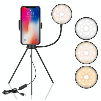 NS-08 Makeup Live Selfie Fill Ring Light Photography LED Dimmable Ring Lamp with Phone Tripod Stand Holder