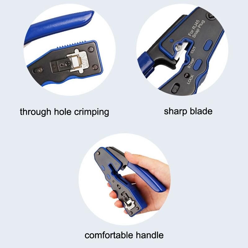 5. Αξεσουάρ προϊόντος: 1 x πένσα καλωδίων δικτύου, 1 x φορητή απογυμνωτήρας καλωδίων, 50 x έξι τύποι κρυστάλλινων κεφαλών με διάτρηση, 50 x διαφανής θήκη