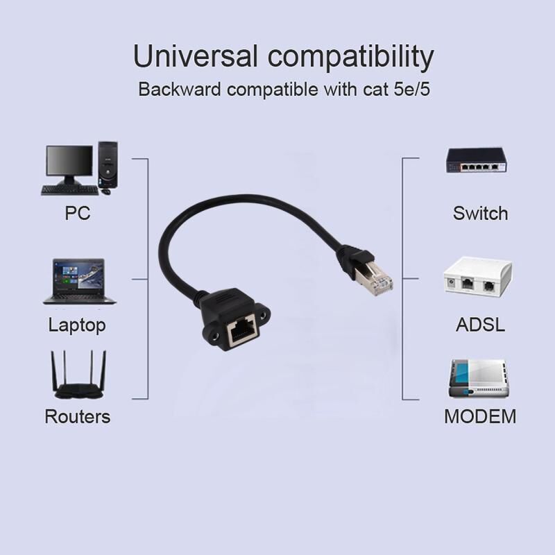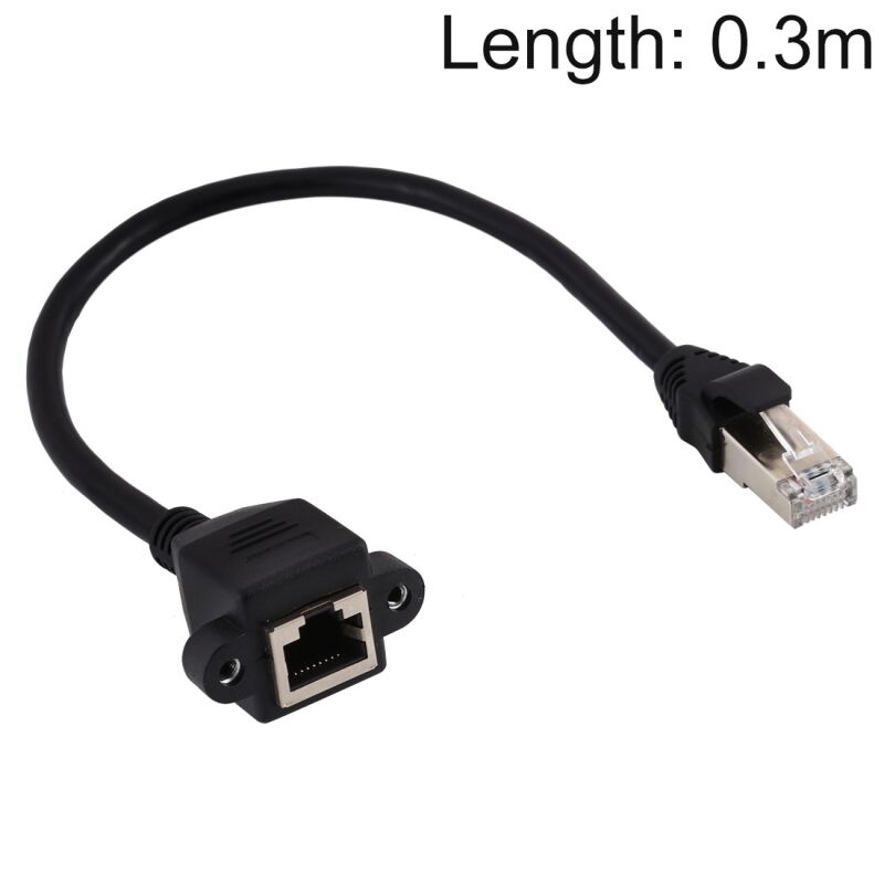Καλώδιο προέκτασης RJ45 θηλυκό προς αρσενικό CATE5 Network Panel Mount Screw Lock, μήκος: 0.3m (μαύρο)