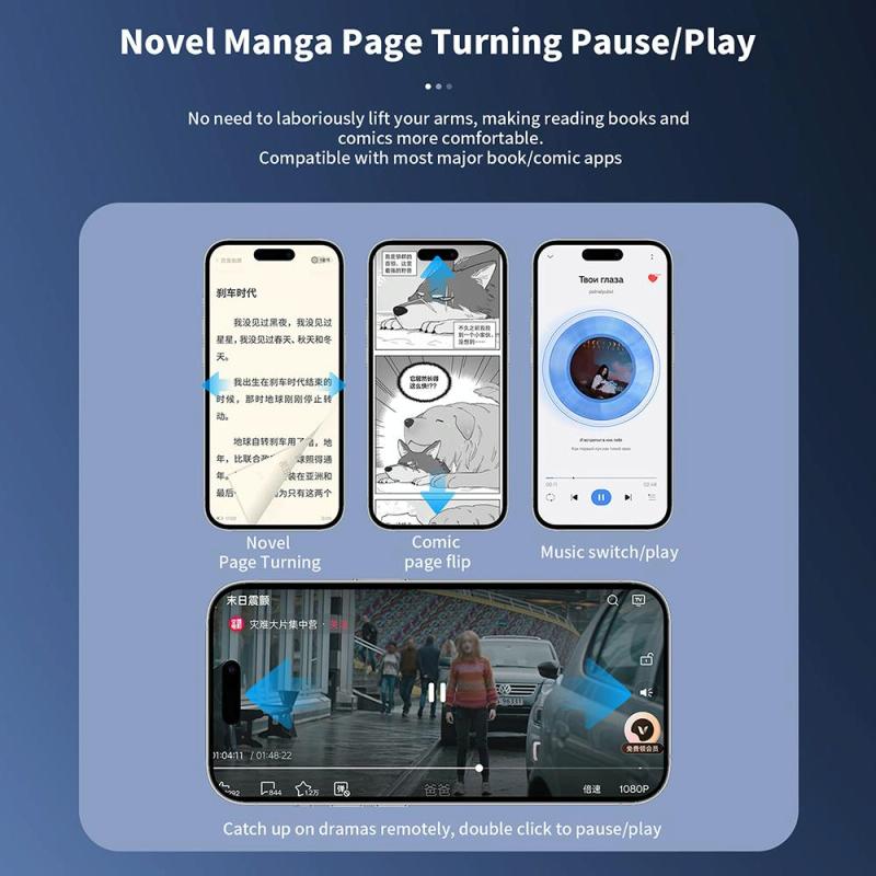 2. Λειτουργία: απομακρυσμένη selfie, like, πάνω και κάτω, αριστερά και δεξιά αλλαγή σελίδας, αύξηση και μείωση έντασης, κ.λπ.