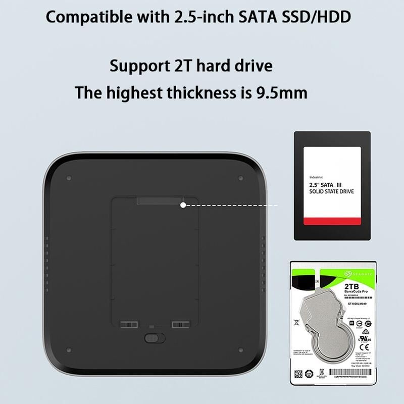 4. Ενσωματωμένη επέκταση σκληρού δίσκου: Συμβατό με στερεούς/μηχανικούς σκληρούς δίσκους SATA 2,5 ιντσών, υποστηρίζει σκληρούς δίσκους 2T και έχει μέγιστο πάχος 9,5 mm.
