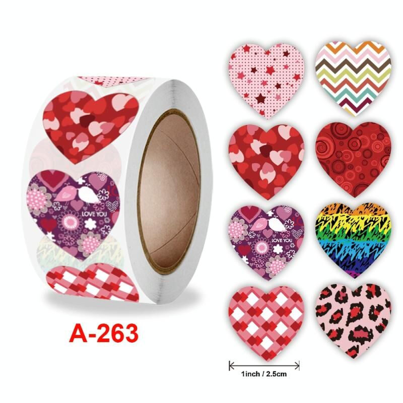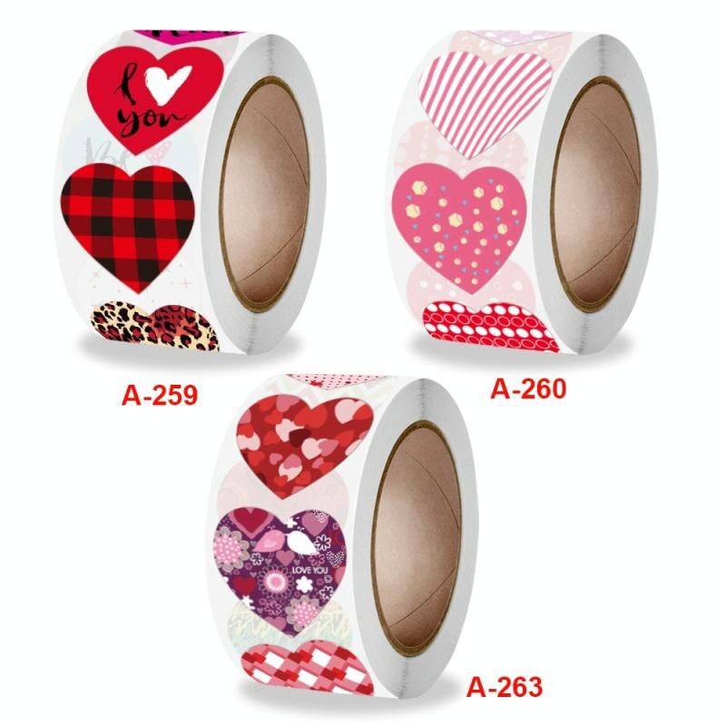 Ρόλο Αυτοκόλλητα Καρδιάς Αγίου Βαλεντίνου, Αυτοκόλλητη Ετικέτα, Μέγεθος: 2,5cm / 1 Ιντσά (A-263)