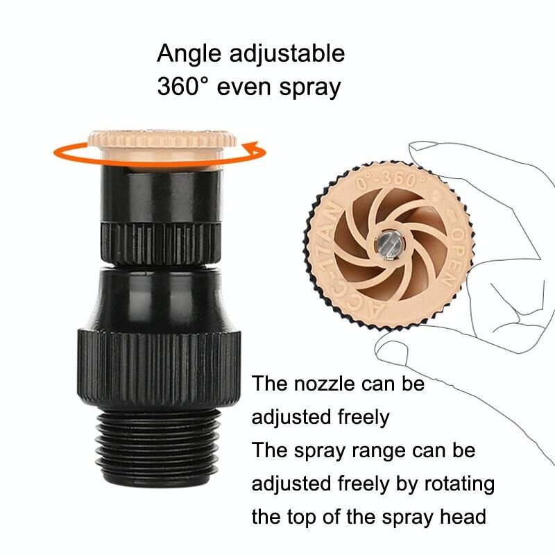 1. Η κεφαλή του ψεκαστήρα μπορεί να ρυθμιστεί ελεύθερα και το εύρος ψεκασμού μπορεί να ρυθμιστεί ελεύθερα περιστρέφοντας την κορυφή της κεφαλής του ψεκαστήρα και ψεκάζοντας ομοιόμορφα 360 μοίρες