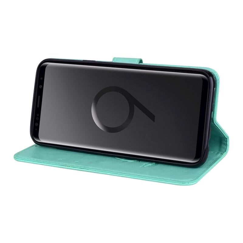 Τριαντάφυλλο ανάγλυφο οριζόντια Flip Περιβαλλοντική PU δερμάτινη θήκη με θήκη & υποδοχές καρτών & πορτοφόλι για Galaxy S9+ (πράσινο)